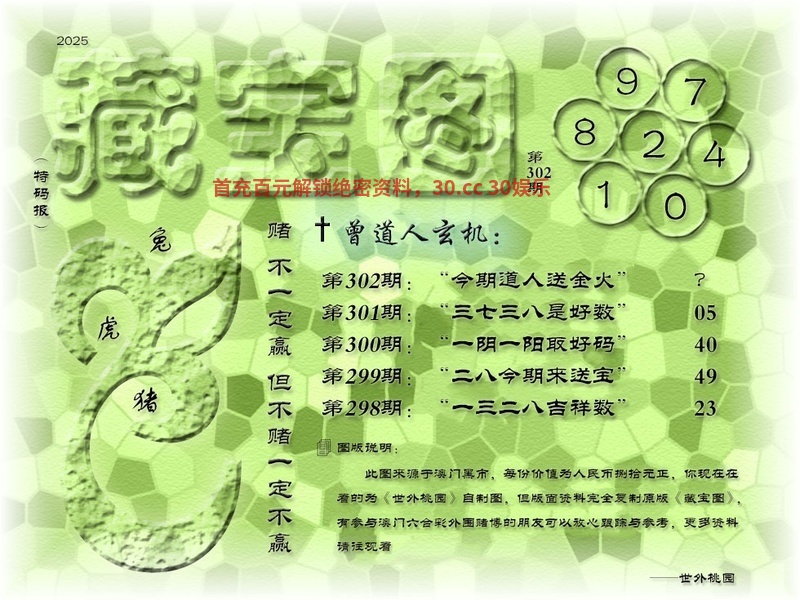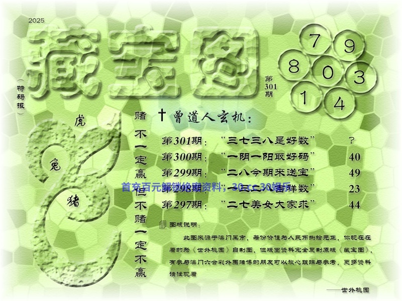 304期:曾道人精选/另简单玄机/另三句赢钱/双色特码诗/钻石玄机